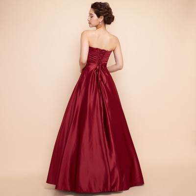 フォーマルな場にふさわしいエレガントなロングドレス。シルクのように滑らかな厚地サテンを使用し、シンプルデザインながらも高級感のある仕立てに。スカートの広がりも抑え目なので伴奏用ドレスやオーケストラ用カラードレス、パーティドレスとしてなど幅広いシーンでぜひご活用ください。どの年代の方にも着やすい深いワインカラーはオールシーズン活用できる定番カラーの演奏会ドレスです。