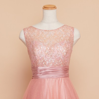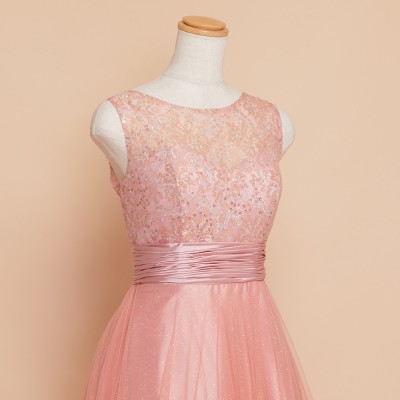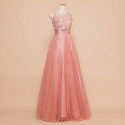 ピーチオレンジレーススパングリッターチュールドレス