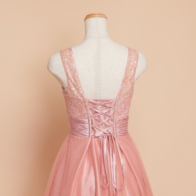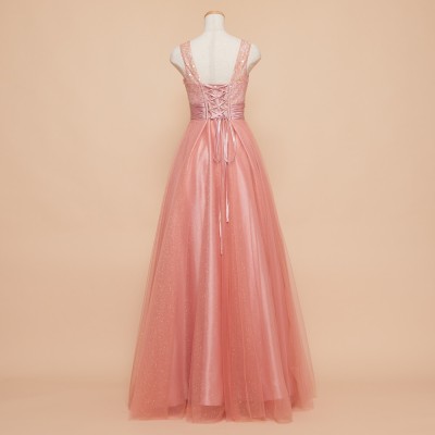 • ピーチオレンジレーススパングリッターチュールドレス