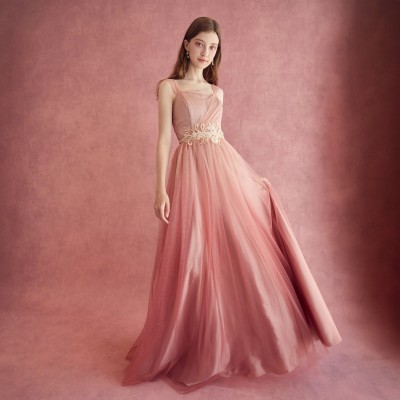 ふんわりとしたギャザーたっぷりのチュールスカートにグラデーションカラーを施したステージドレスです。アプリコットの様な優しいオレンジから夕陽の様に鮮やかなオレンジへと変化する可愛らしいカラーリングが特徴。散りばめられたキラキラのラメとウエストのフラワーモチーフが華やかさをプラスします。