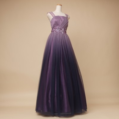 パープルカラーグラデーションギャザーチュールドレス