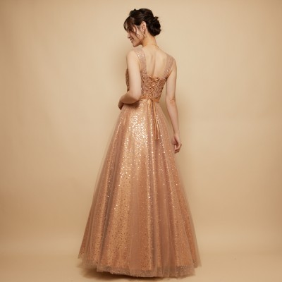 ゴールドブロンズチュールブリリアントビーズ刺繍ドレス