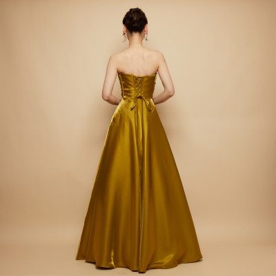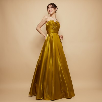 【OUTLET】扇風タックシャイニーサテンオリーブイエロードレス