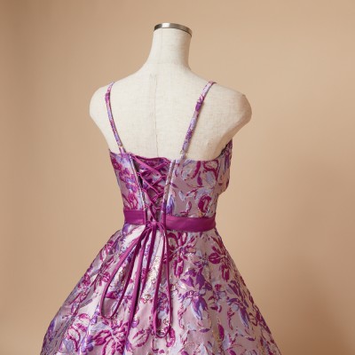 マゼンタカラー総柄ジャガードAラインフレアドレス