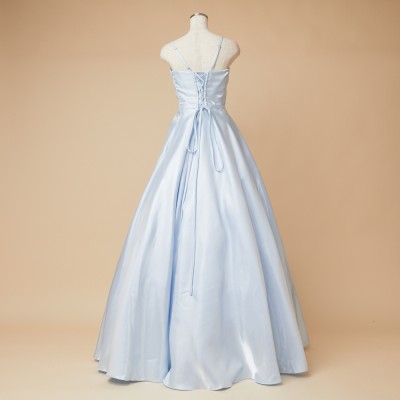 アイスブルースパンコール刺繍シャイニーサテンドレス