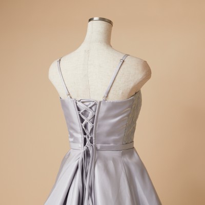 アイスシルバースパンコール刺繍シャイニーサテンドレス