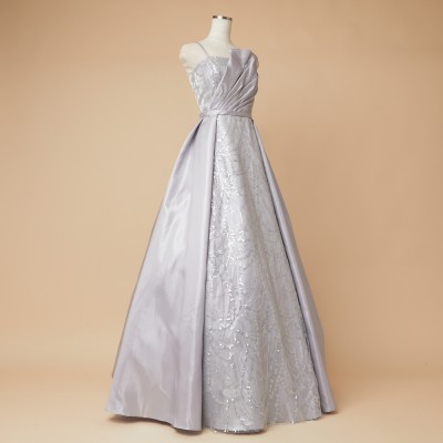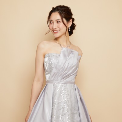 • アイスシルバースパンコール刺繍シャイニーサテンドレス