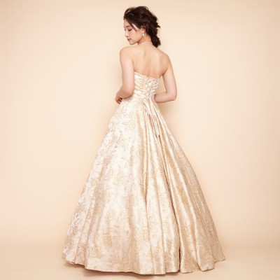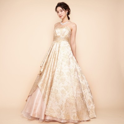 【OUTLET】シャンパンゴールドフラワージャガードドレス