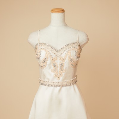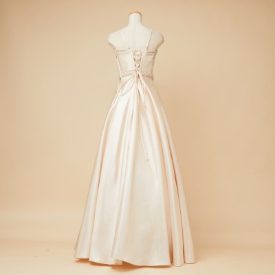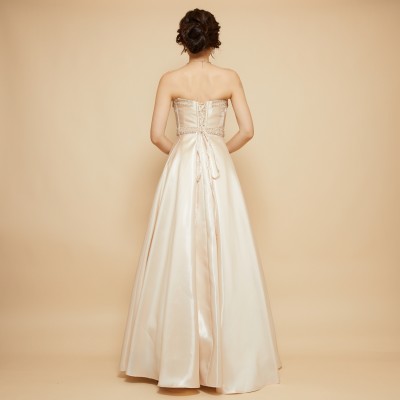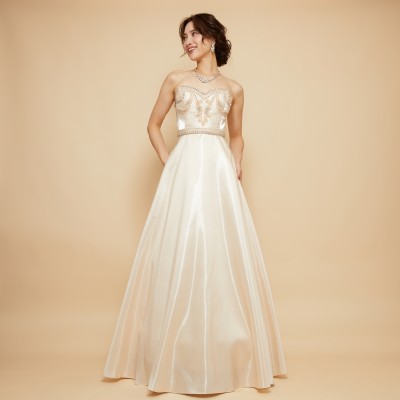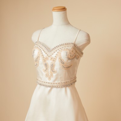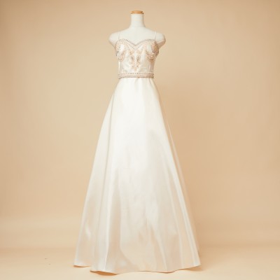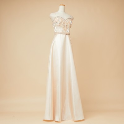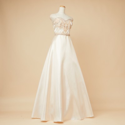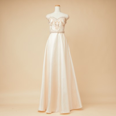 オーロラクリスタル装飾クリームパール艶サテンドレス