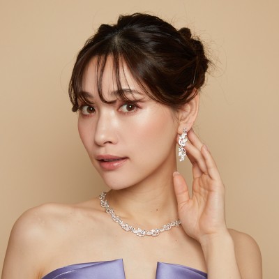 シンプルなリーフモチーフが連なった、シルバーカラーのネックレスピアスセット。ドレスを選ばず使いやすい1連スタイルのネックレスです。