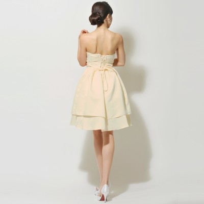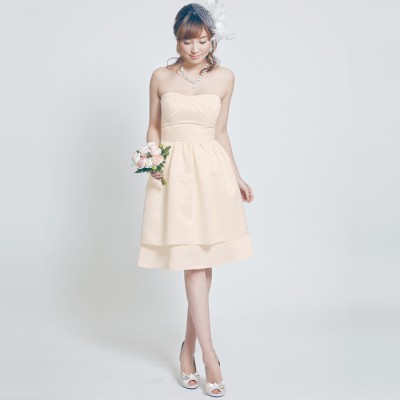 【OUTLET】サテンレイヤーアイボリーミディアム丈ドレス