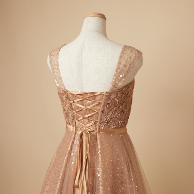 ゴールドブロンズチュールブリリアントビーズ刺繍ドレス