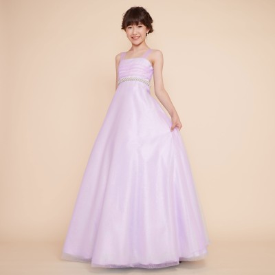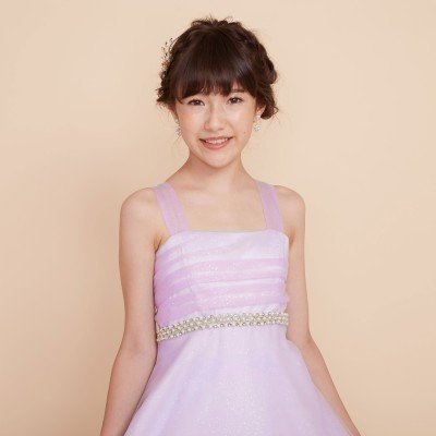 粉雪のようにキラキラ光るふんわりグリッターチュールのライラックカラードレスです。ウエストにはパールとストーンを合わせた宝石のような装飾ベルトデザインを。キラキラゴージャスなドレスで注目度アップ!パニエを合わせてさらにふんわり着ていただくのがおすすめです。発表会や記念写真撮影用にぜひ。