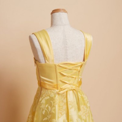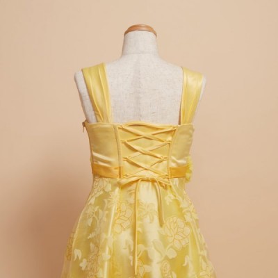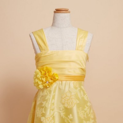 少し大人なデザインのキュートイエローキッズドレス。明るく元気の出る鮮やかカラーが可愛らしさをより引き立てます。パニエを入れてふんわり着るのもおすすめ。発表会や記念写真撮影用に。