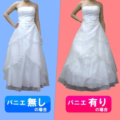 ご注文いただくドレス、もしくはお手持ちのドレスのスカートがワイヤーパニエを合わせる事が出来る広がりであるかを必ずご確認ください。