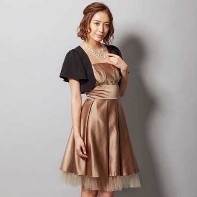 【OUTLET】厚手サテンモカブラウンミニドレス