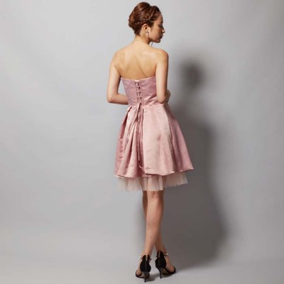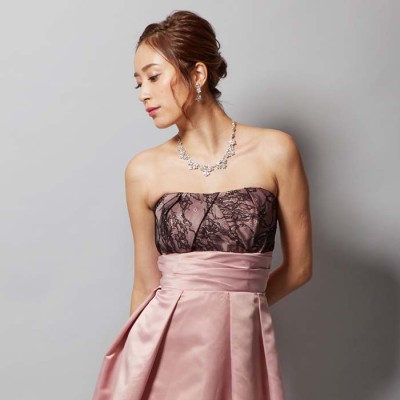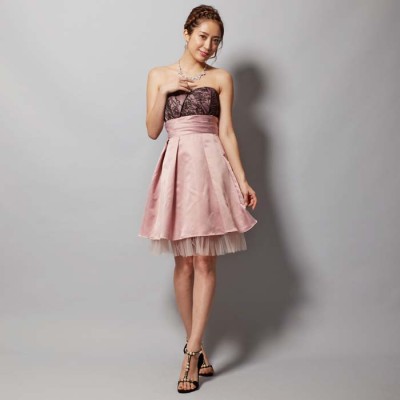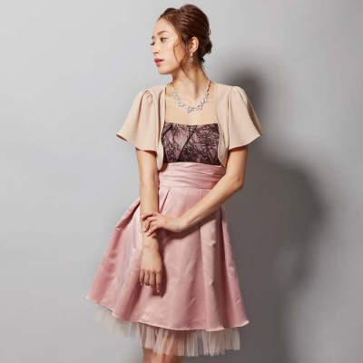 【OUTLET】ダスティーローズブラックレースミニドレス