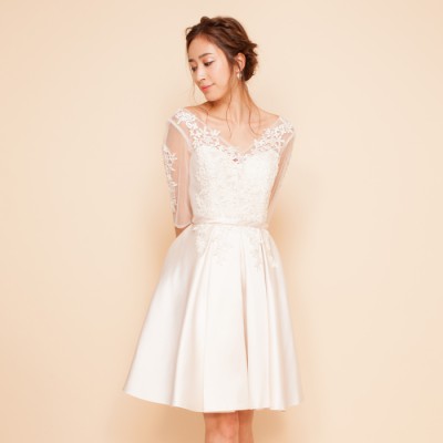 【OUTLET】チュール袖アイボリーミディアム丈ドレス