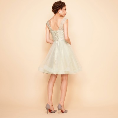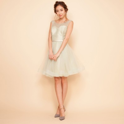 ブレードの付いた立体的な広がりのチュールスカートが可愛らしいミディドレスです。