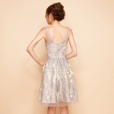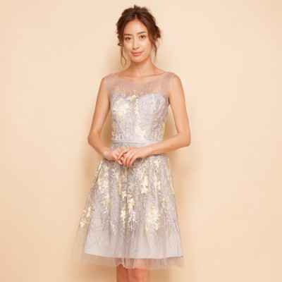 【OUTLET】イエローフラワー刺繍グレーチュールミニドレス