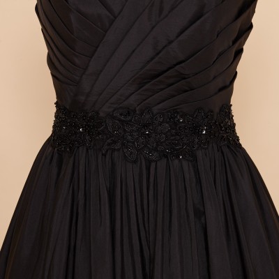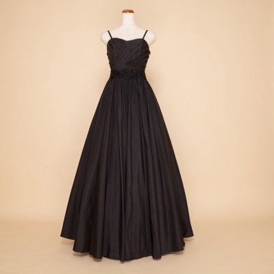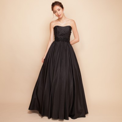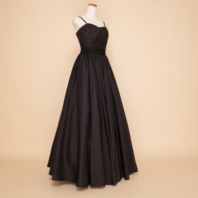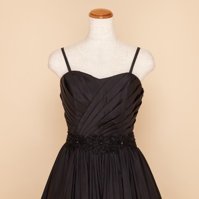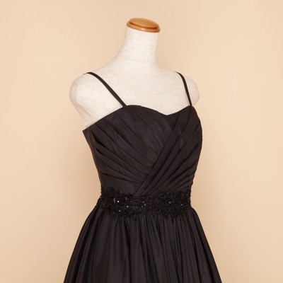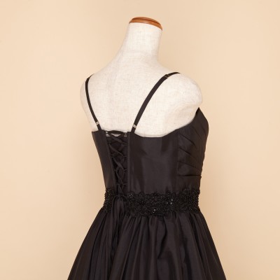スカートには程よいボリュームがあり、レースベルトに施されたビーズ装飾が繊細に煌めくのでブラックドレスでも華やかに着用していただけます。
