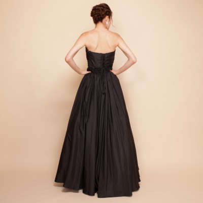 気品あるクラシカルなデザインのAラインドレスです。ギャザーをふんだんにあしらったスカートは、ボリュームパニエを使えばさらに豪華にみせる事も可能。ドレスを初めて着る方にも扱いやすい、丈夫なタフタ生地を使用しています。