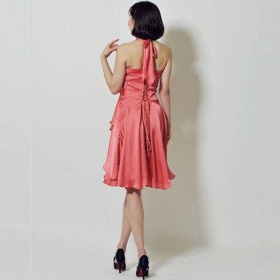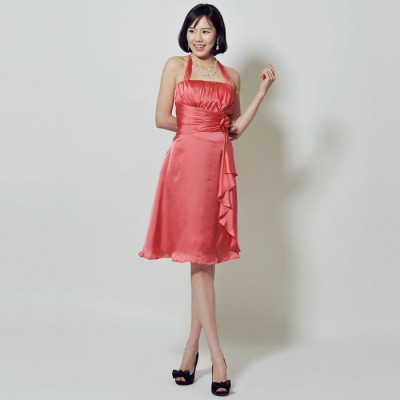 【OUTLET】コーラルオレンジサテンホルターネックドレス