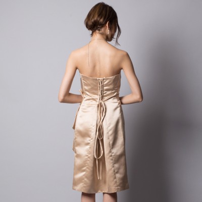 【OUTLET】リッチサテンベージュゴールドミニドレス