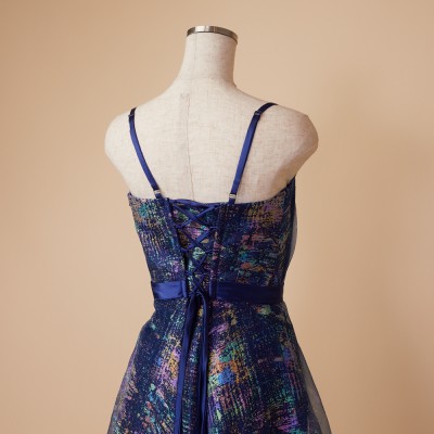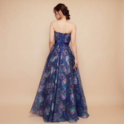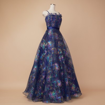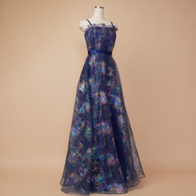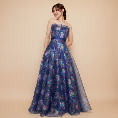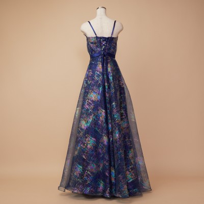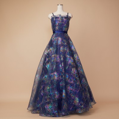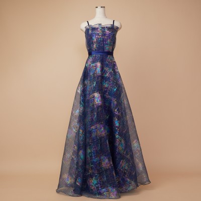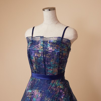 ホロラメジャガードオーガンジーネイビーカラードレス