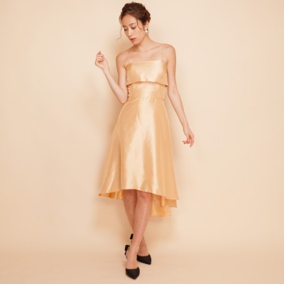 【OUTLET】ゴールドシャンタンテールカットドレス