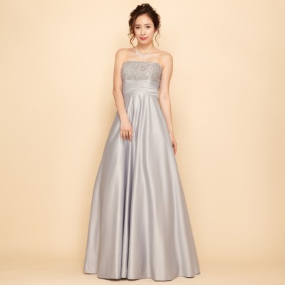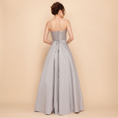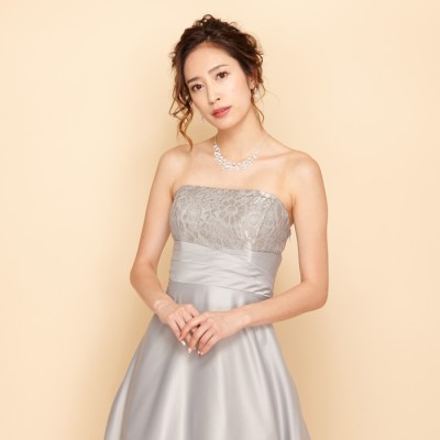 • シルバー上質サテンラメフラワーレースロングドレス