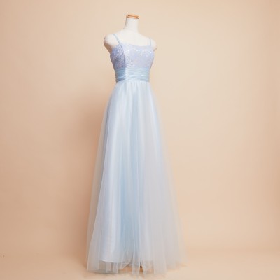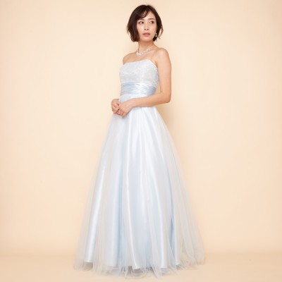 淡いパステルカラーが涼し気なベビーブルーカラーのドレス。