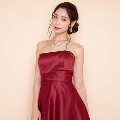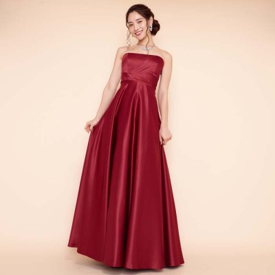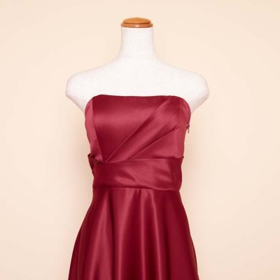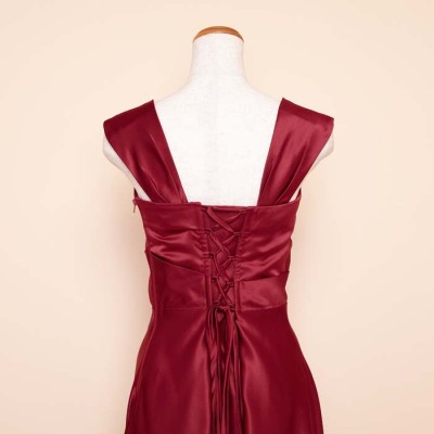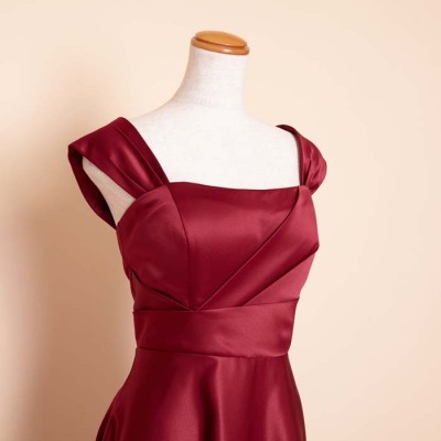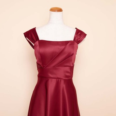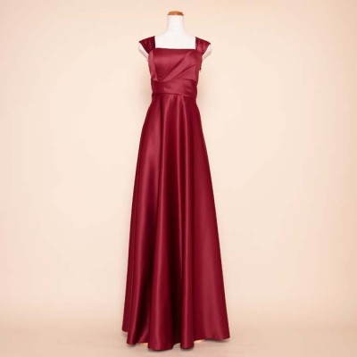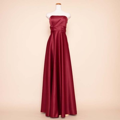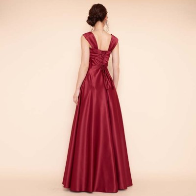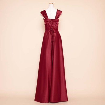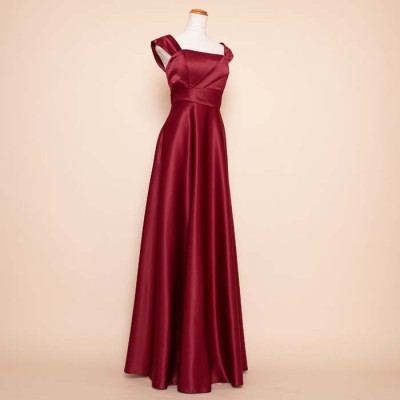 リッチサテンAラインワインカラードレス