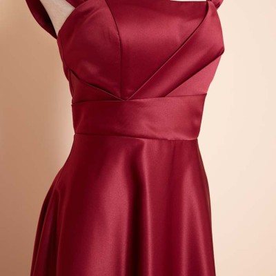 Wine Red Rich Satin Fit and Flare Gown with Removal Straps