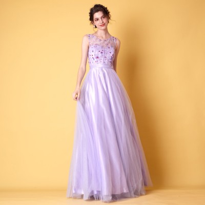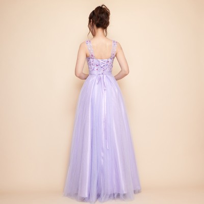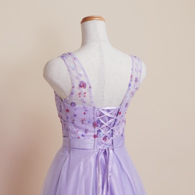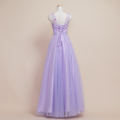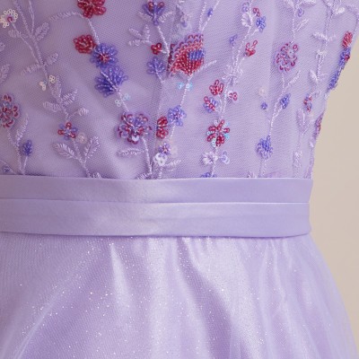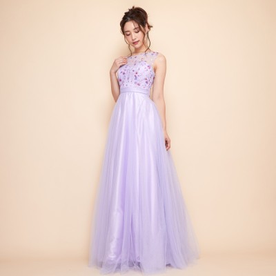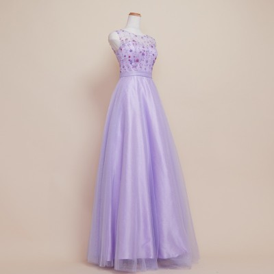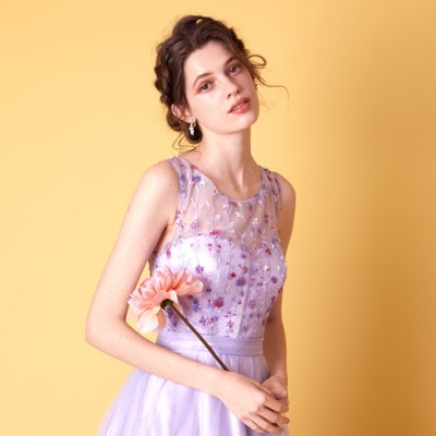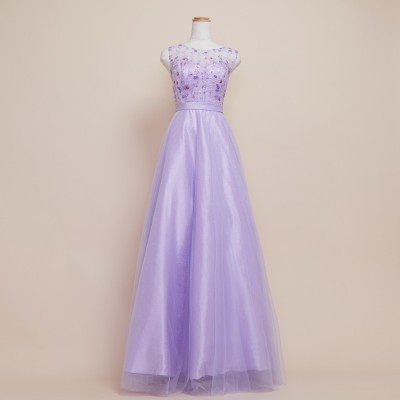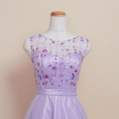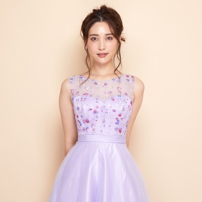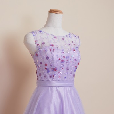 小花スパンコール刺繍グリッターチュールライラックドレス