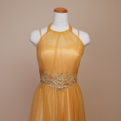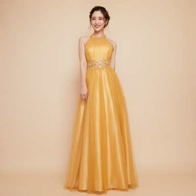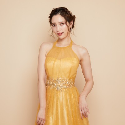 リボンホルターラメチュールハニーイエロードレス