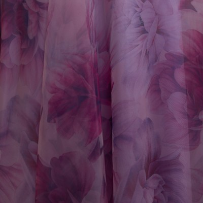 シルキーグロスオーガンジーピンクフラワープリントドレス