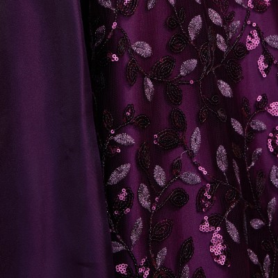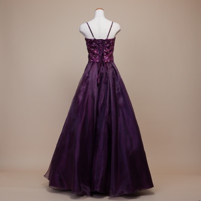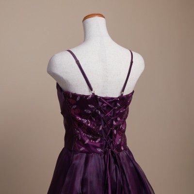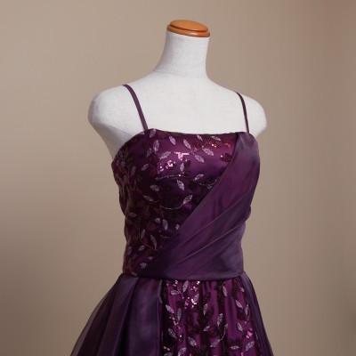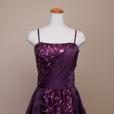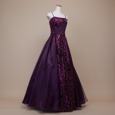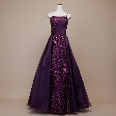 リーフデザインスパンコールパープルオーガンジードレス