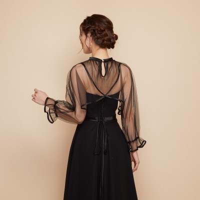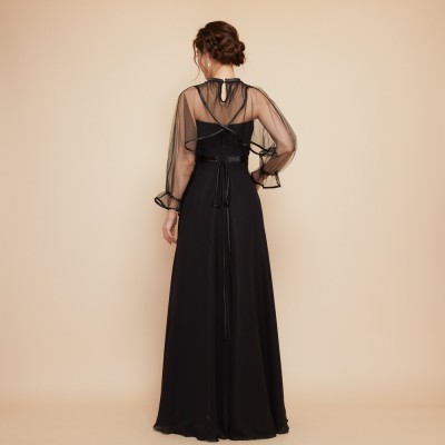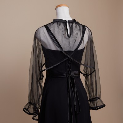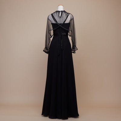 【OUTLET】チュールボレロ付きブラックシフォンドレス