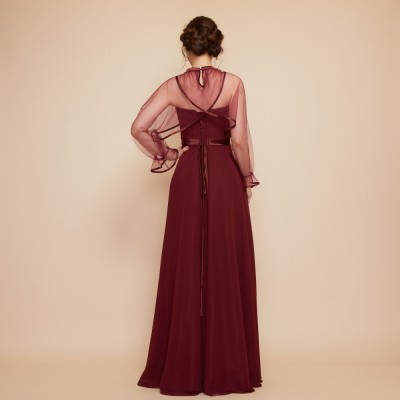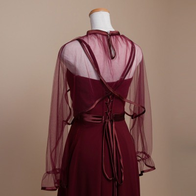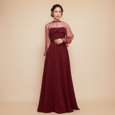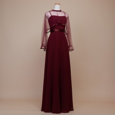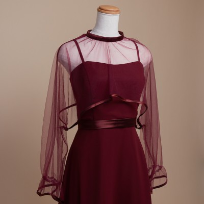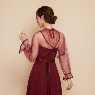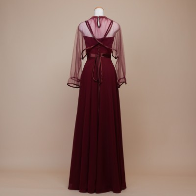 シアーチュールボレロ付きワインカラーシフォンドレス