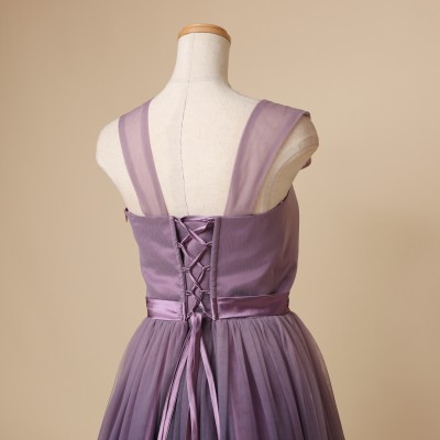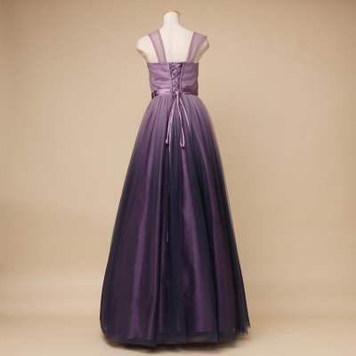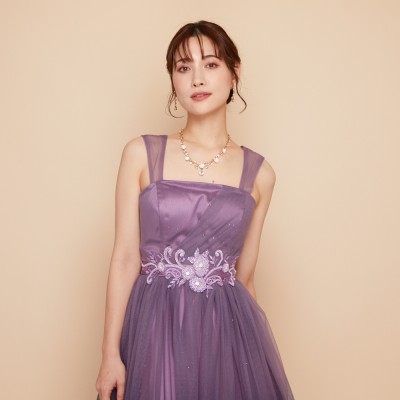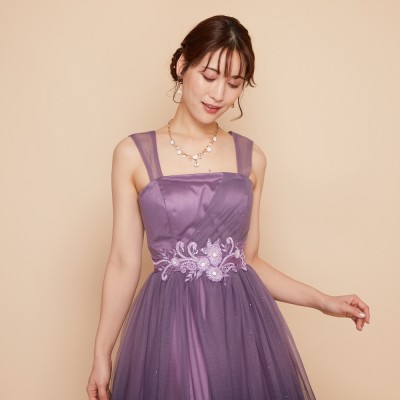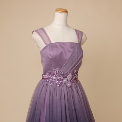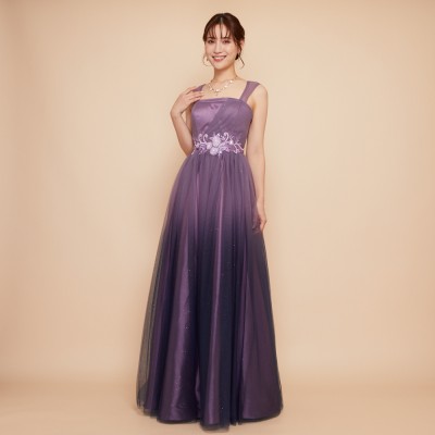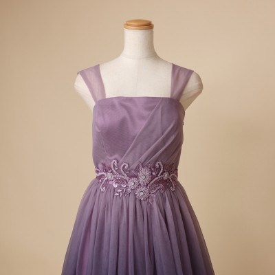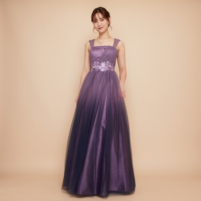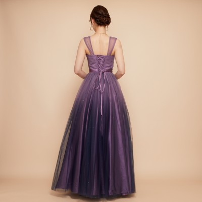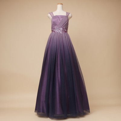 パープルカラーグラデーションギャザーチュールドレス