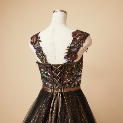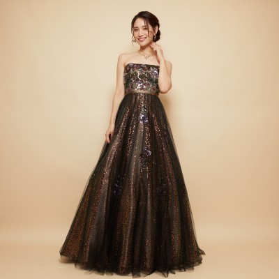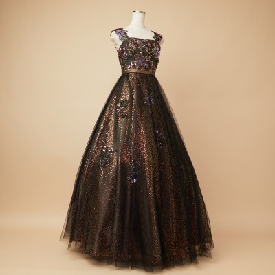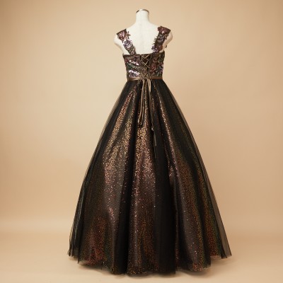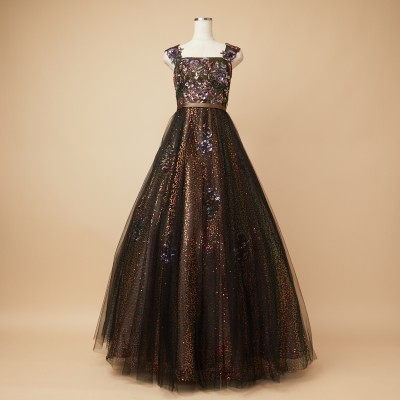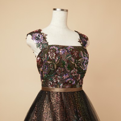 彩りビーズ刺繍オーロラスパンコールブラックドレス