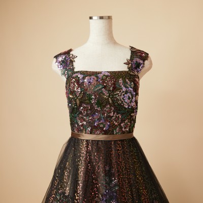 ※こちらのドレスに使用しているオーロラスパンコールは、角度や照明によって色の見え方にかなり変化があります。