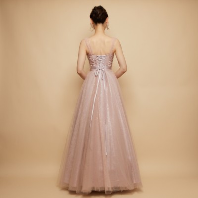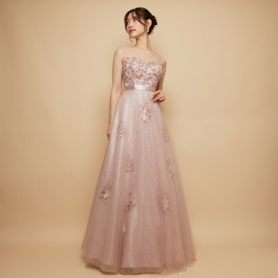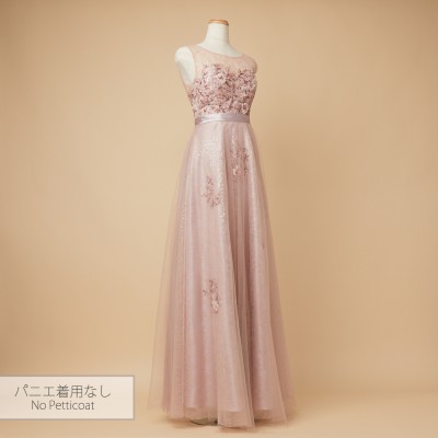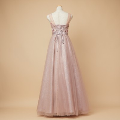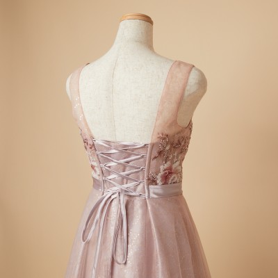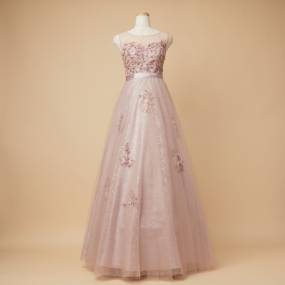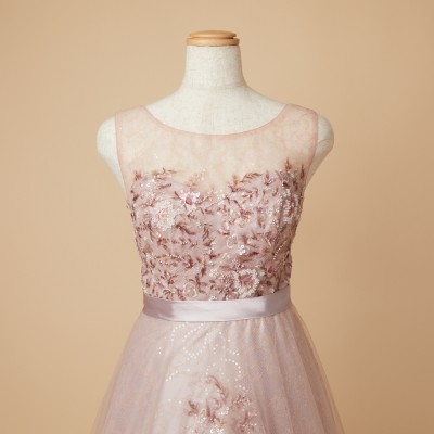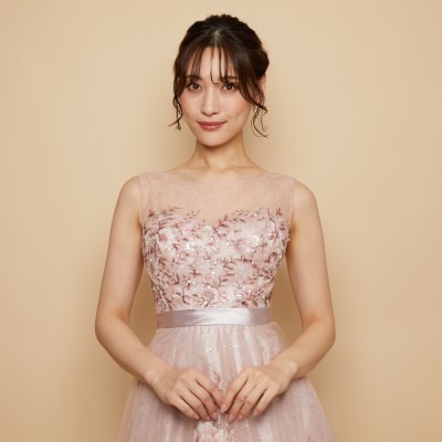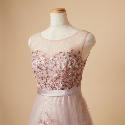 スモークカラーフラワービーズ刺繍ダスティローズドレス