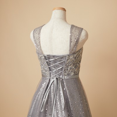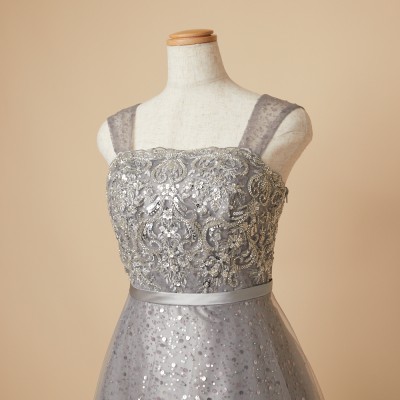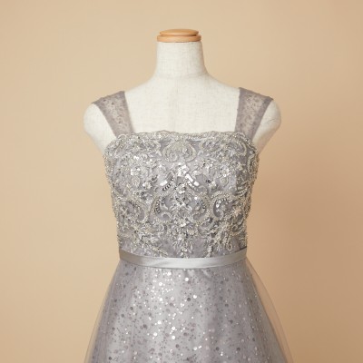 シルバーグレーチュールブリリアントビーズ刺繍ドレス