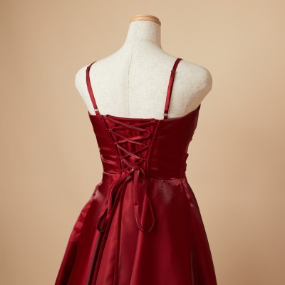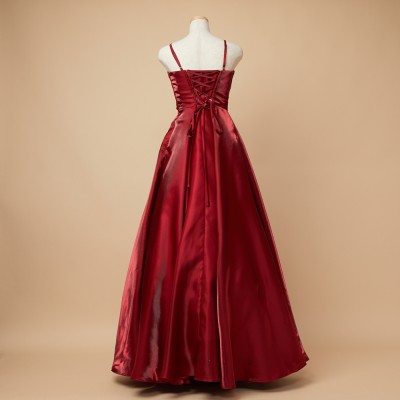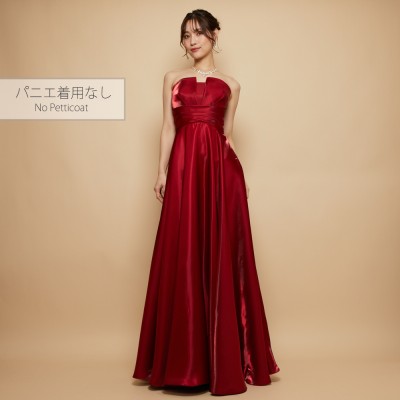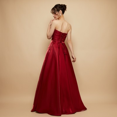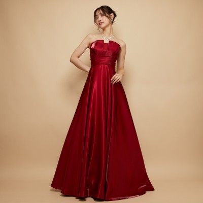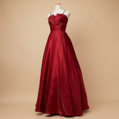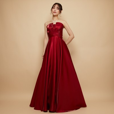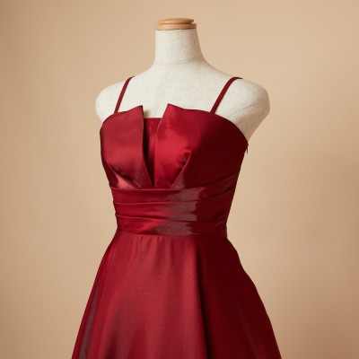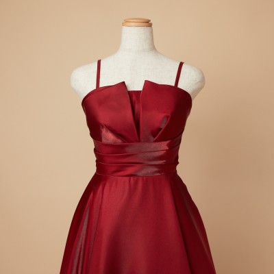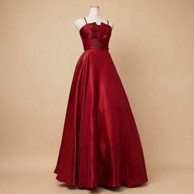 • 扇風タックシャイニーサテンキャンディレッドドレス