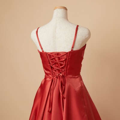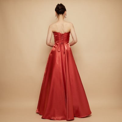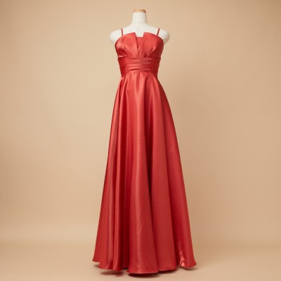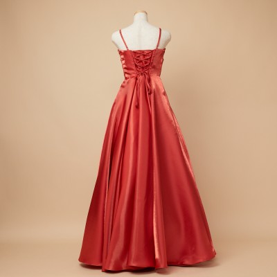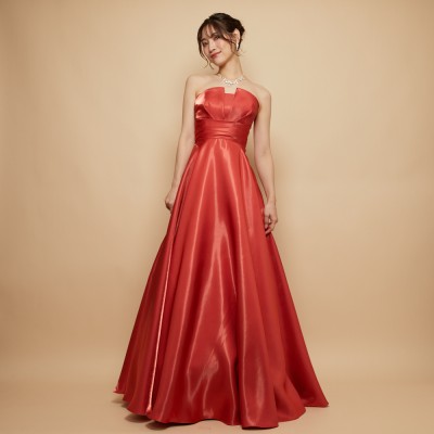 扇風タックシャイニーサテンブラッドオレンジドレス