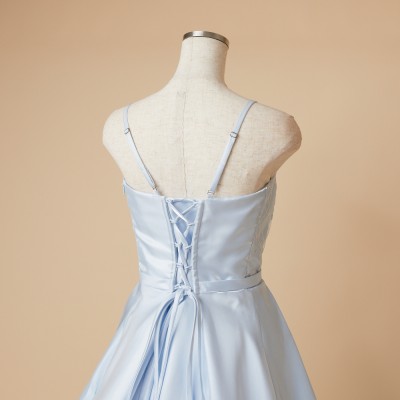 アイスブルースパンコール刺繍シャイニーサテンドレス