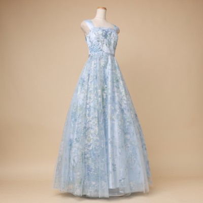 【OUTLET】グラデーションラメチュールアクアブルードレス