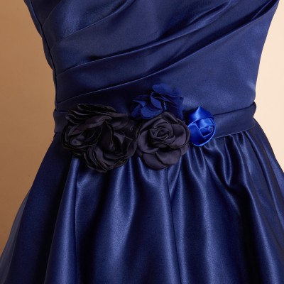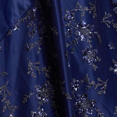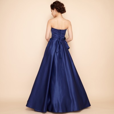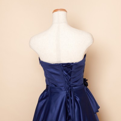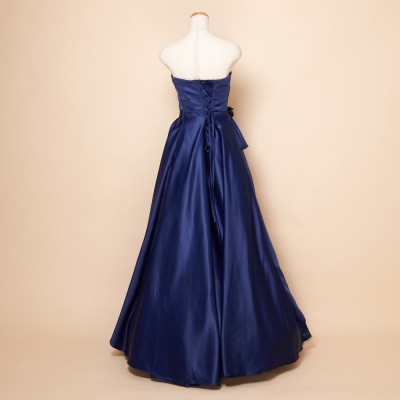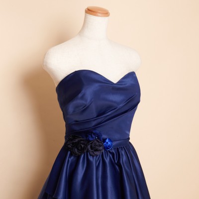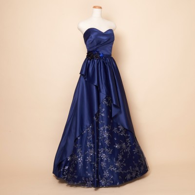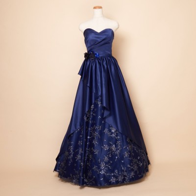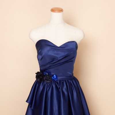 ウエストフラワーネイビー上質サテングリッタードレス